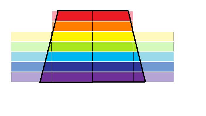 Step 2: Sew these strips together in the order you want (I did the order of the rainbow). Match the center seams together so the shorter strips are centered. Do not sew the white strip (or whatever color you chose your band to be) with this. New paint diagram: